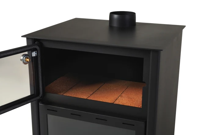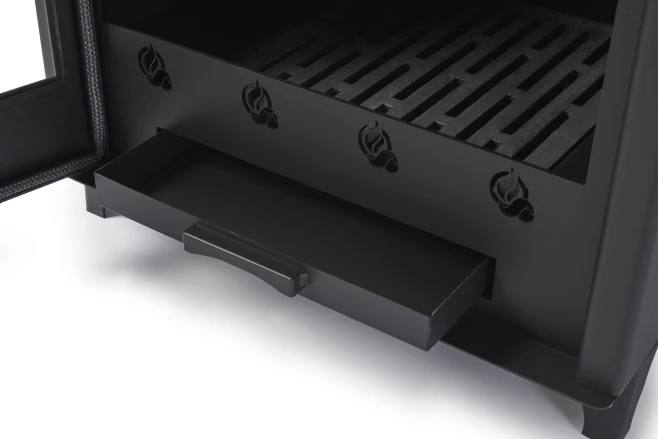 O Isla Graciosa 2 é um fogão inovador com um amplo painel de vidro e aço espesso para maior potência de aquecimento e durabilidade. Possui uma grande grelha de ferro fundido, uma gaveta para cinzas oculta e um gancho para atiçador. Os botões e alças são feitos de aço inoxidável para uma vida útil mais longa. Também possui uma saída de fumaça superior.